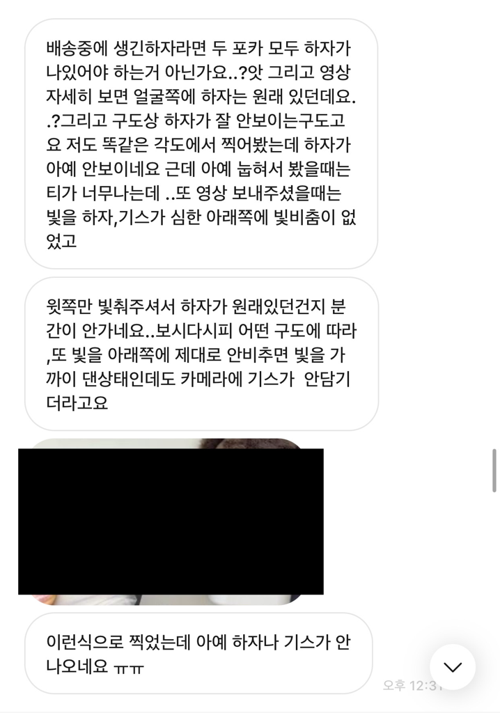 6. 하자가 있는 부분엔 빛을 제대로 비추지 않음 + 영상을 제대로 찍지 않음을 지적하심
