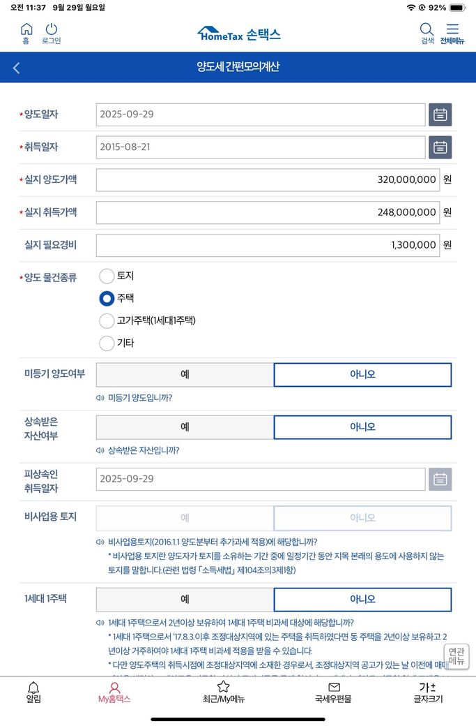 팔앗구요 2015년에 구입햇고 이번달에 팔앗습니다 홈텍스에 양도세 모의계산해보니 이렇게 나오는데 부동산 수수료가 130정도 나왓는데 저기 필요경비에 130만원이라고 넣으면 되나요? 그리고 세무서 가서 이렇게 신고하면 될까여
