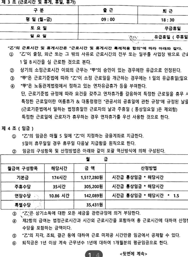 근로계약서 일부 첨부했는데 참조 부탁드릴게요'