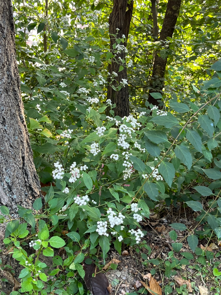 더 가까이에서 찍으면 정확하겠지만 덜꿩나무 같습니다. 그런데 다른 모양의 잎들이 섞여 있어서 확실한지 모르겠습니다. 꽃이 피는 형태를 봤을 때는 덜꿩나무로 추정됩니다.