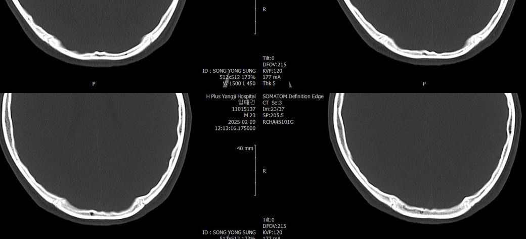 두개골 수술 또는 골절 의심되는 상황인데 엑스레이와 ct사진을 한번 봐주실 수 있나요?