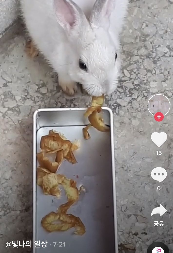 토끼는 현재 지금 이시간에도 음식물쓰레기를 먹으며 빌라복도에서 생활하고 있습니다