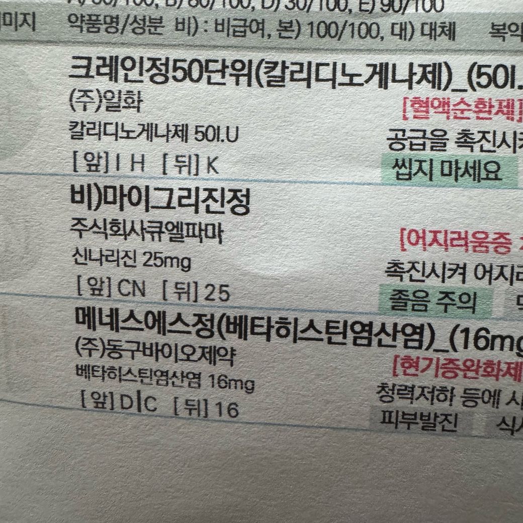 첫번째는 이비인후과에서 어지러워서 타온 약이고 두번째는 피부과에서 타온 약입니다. 텀을 두고 먹는게 나을까요 아니면 같이 먹어도 괜찮나요?