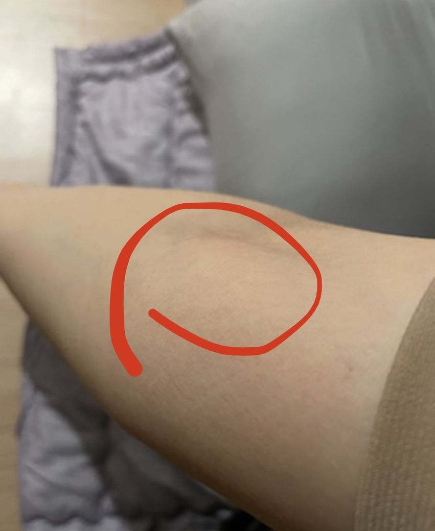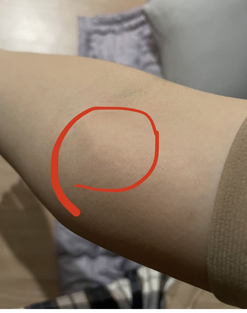 어제부터 팔 접히는 부분 안쪽에 사진과 같이 피부 아래 약간 폭신 폭신한 붓기 멍울이 잡힙니다.
