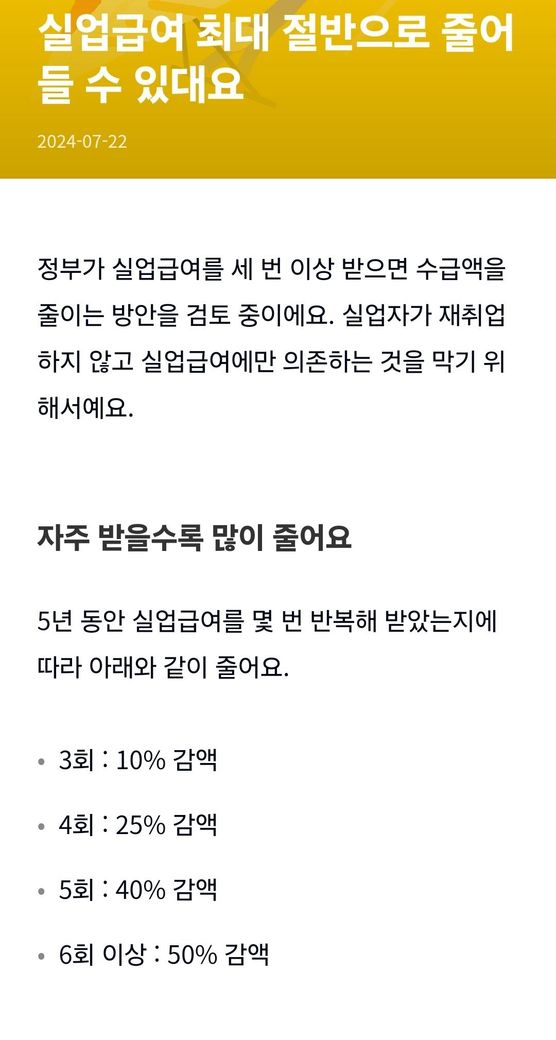 실업급여 받는 횟수에 따라 줄어든다고 하는데