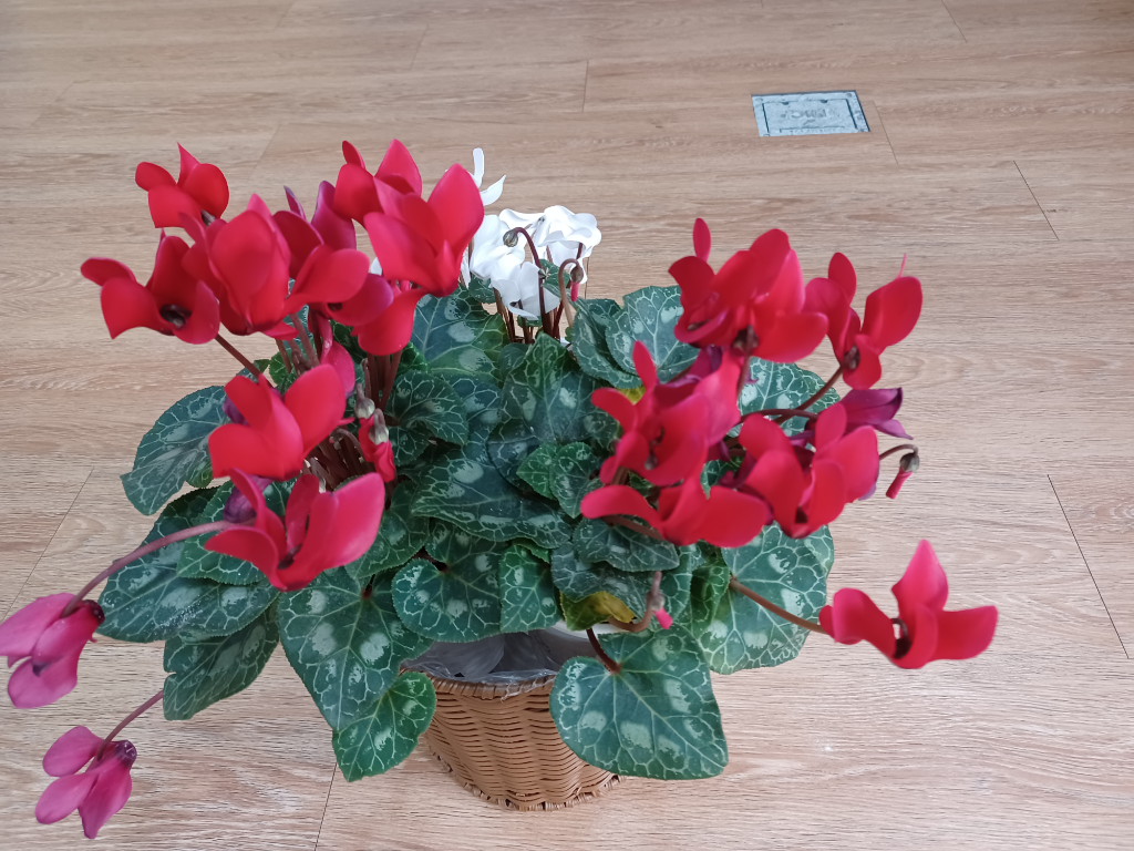 시클라멘은 수줍음, 내성적 성격이라는 꽃말을 가지고 있는 꽃입니다
