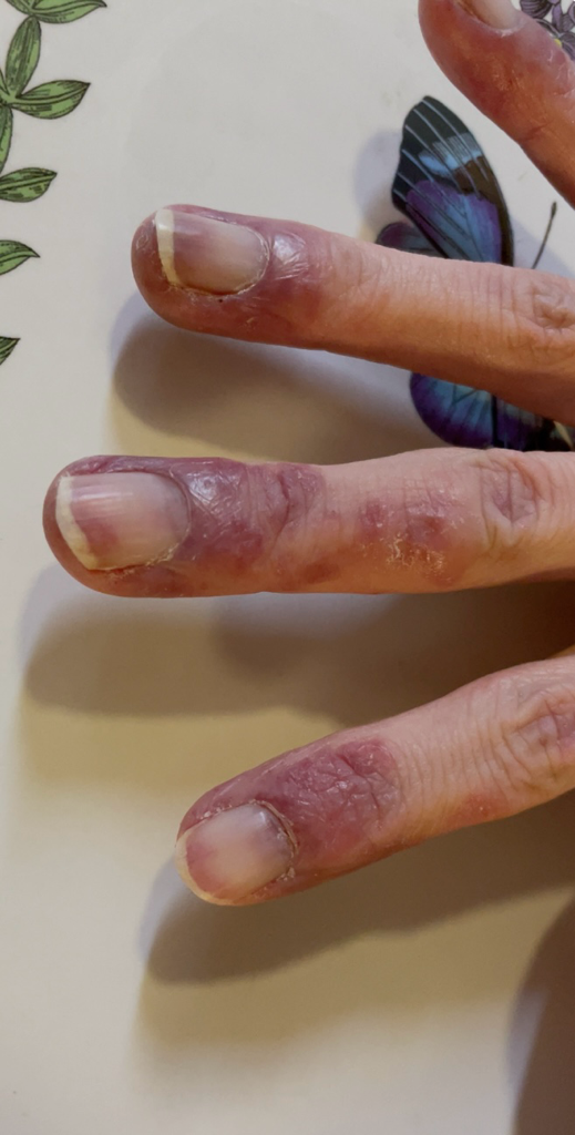 (55세 여자)손가락 끝 부분 모두 붉은색에 피부 박리 현상