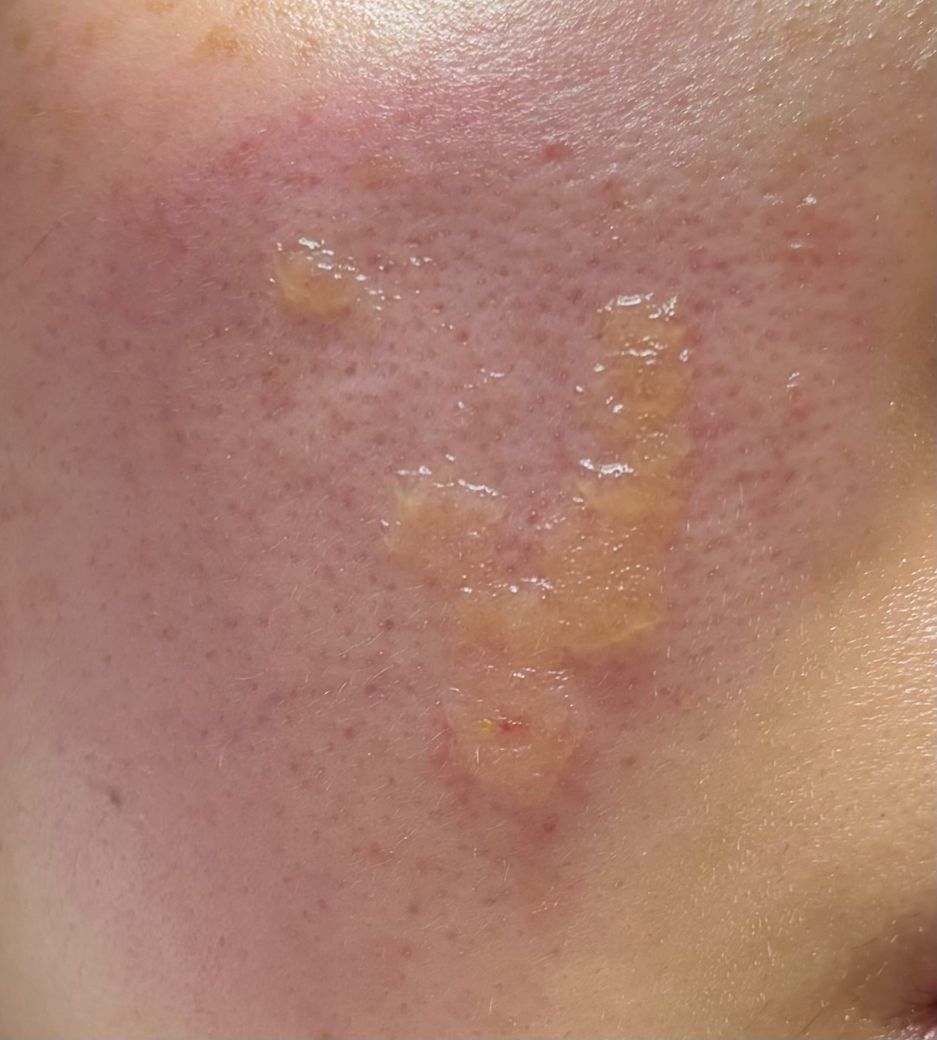 사진 상으론 피부가 올라온건지 진물이 나온건지 부정확한데 말씀하신대로 시술 부위에 생긴 상처나 염증 때문일 수 있습니다. 화상의 증상일 수도 있으니, 우선 병원에 즉시 연락하여 상황을 설명하고 치료를 받는 것이 중요합니다. 환불이나 원상복구를 요구할 수 있는지는 병원 정책과 시술 후 관리에 따라 다르지만, 문제가 발생한 원인에 대해 적극적으로 도와줄거라 사료됩니다.