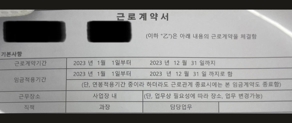 해당 근로계약서 내용으로 몇군데 노무사를 통해 알아봤으나 기간제 근로자로 확인 되어 퇴사를 하겠다고 말 할 예정 입니다.
