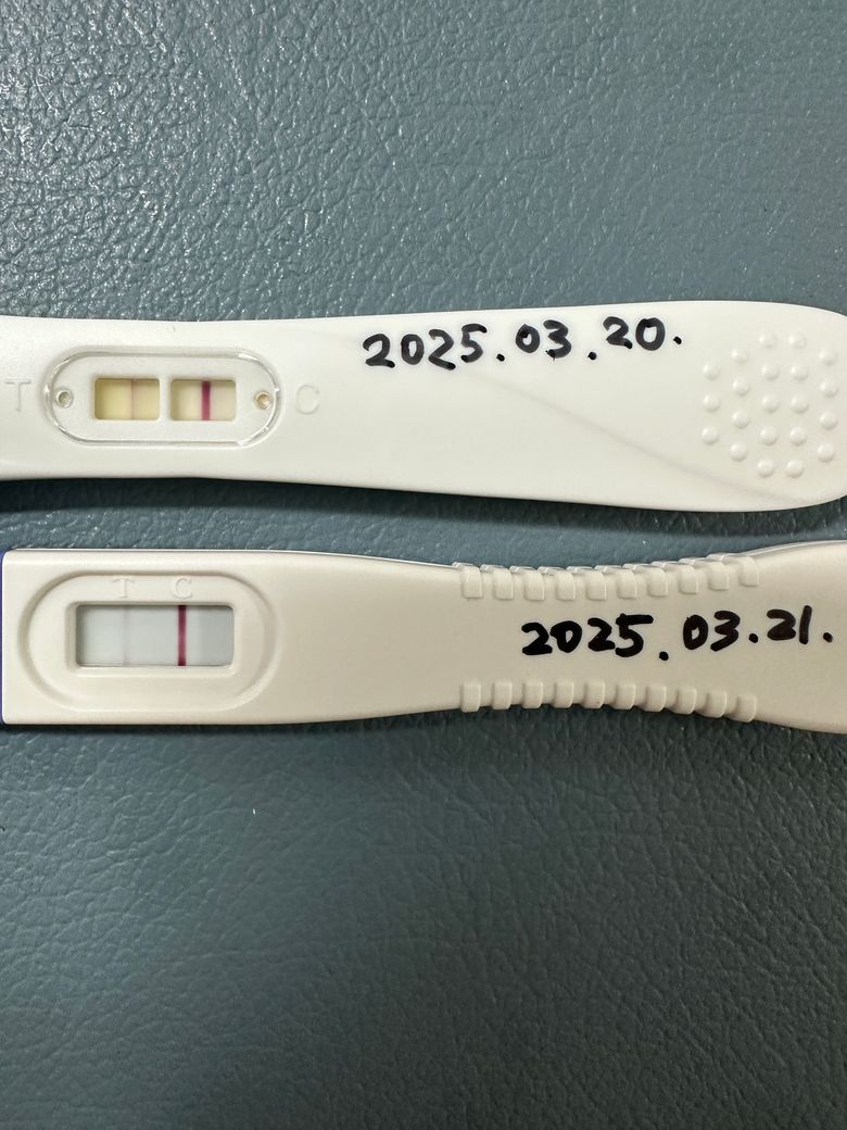 그러나 흐린 두 줄이 나왔다고 해서 100% 임신이라고 확신하기는 어렵습니다. 정확한 결과를 위해서는 2~3일 후 아침 첫 소변으로 다시 테스트를 해보거나, 병원에서 혈액 검사(Beta-hCG)를 받는 것이 가장 정확한 방법입니다.