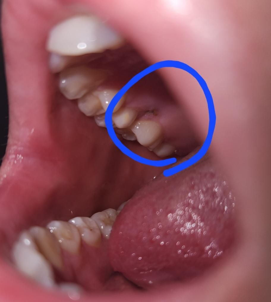 잇몸에 상처가 생기면서 염증이 생긴거일수도 잇고 유치가 남아서 그럴수도 잇으니 치과에 가셔서 검진을 받아보세요.