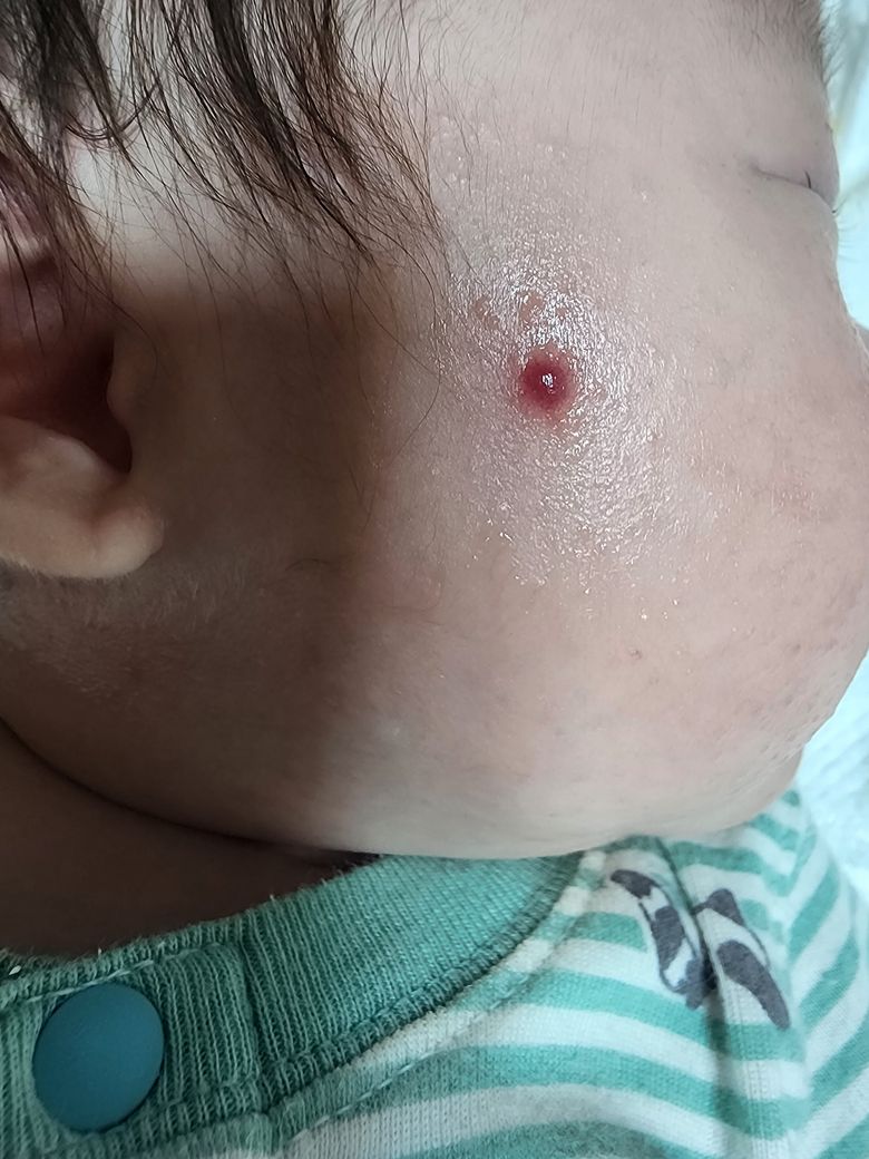 사진만 봤을 때는 유아혈관종일 가능성이 있습니다.