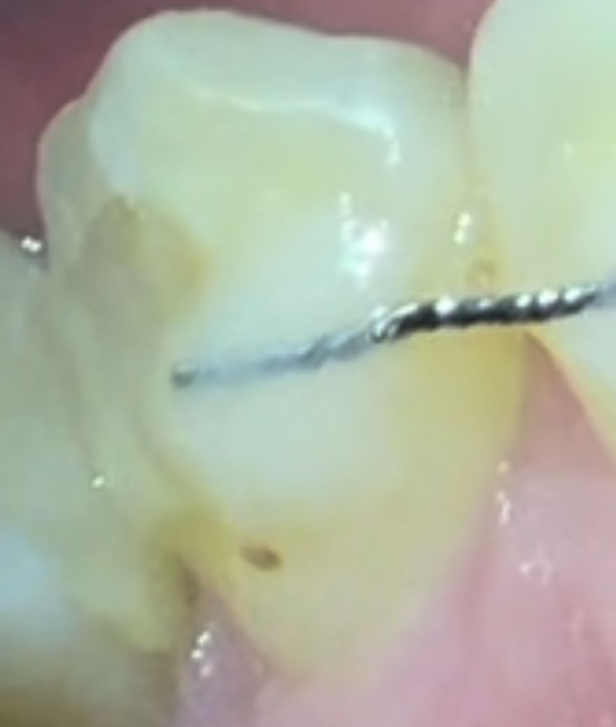 다른 각도의 사진으로 봤을 경우에는 충치라기보다도 이전에 레진으로 충전한 부위가 변색으로 인해서 색이 어두워진 것처럼 보입니다.