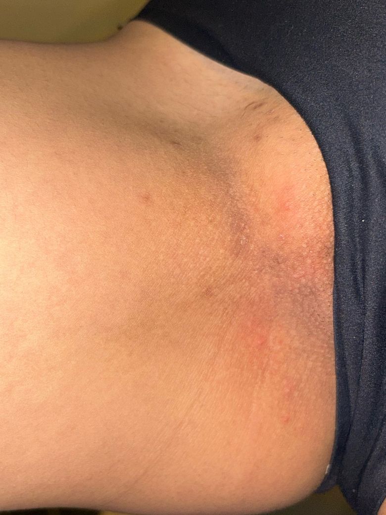 사타구니 주변 성병 혹은 모낭염 의심되는 붉는 돌기