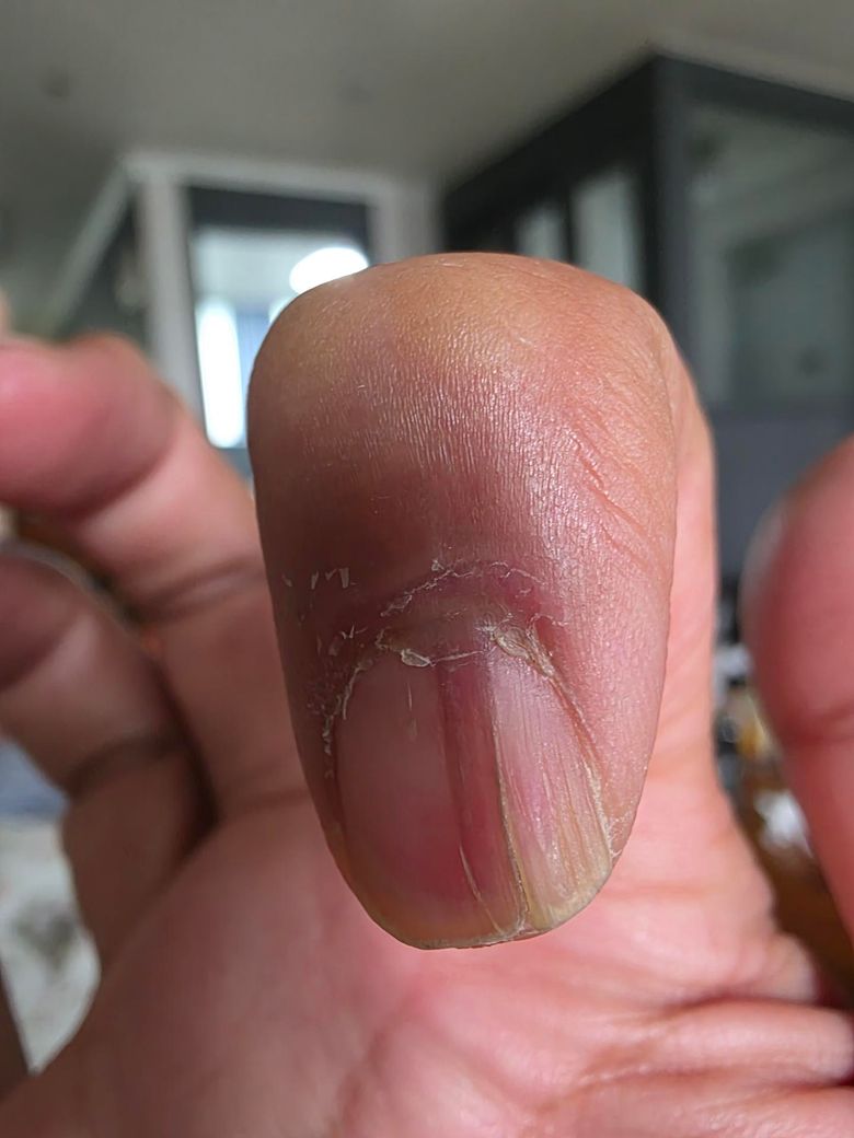 손톱 증상좀 봐주세요.통증은 없고 줄같은게 생기고 손톱끝이 갈라져있습니다.