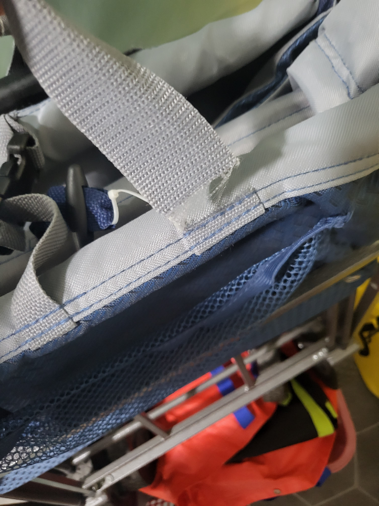 첨부한 사진처럼 캠핑웨건의 손잡이 끈이 찟어지며 떨어졌습니다. 이렇게 떨어진 경우 끈을 어떻게 수선을 하나요? 찟어진것 처럼 떨어져 어떻게 수선할지 모르겠네요