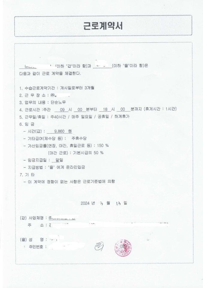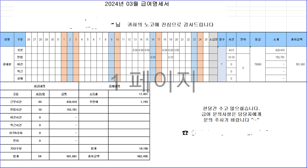 정확한 임금 금액을 알고 싶습니다 (근로계약,급여명세서 첨부)
