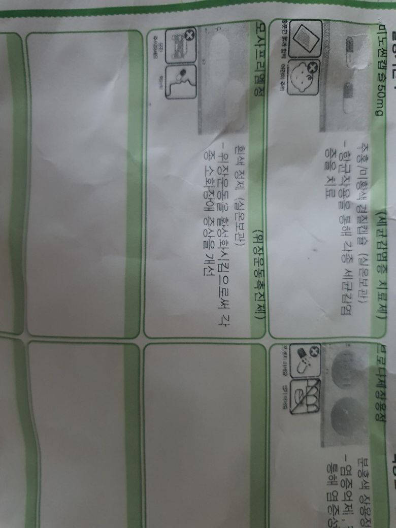 약은 미노씬캡슐50mg, 브로나제장용정,모사프리앰정입니다