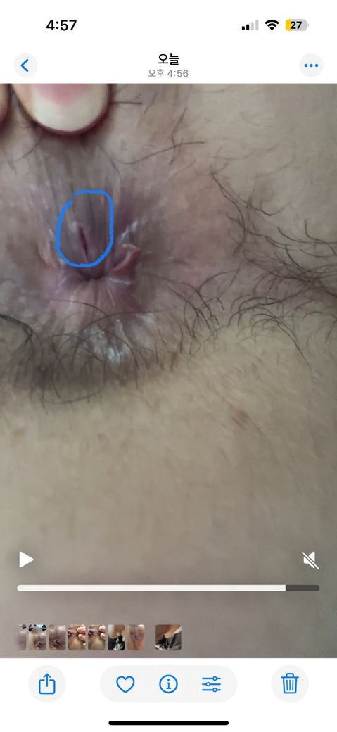 항문 오른쪽 안 1cm 부근을 손으로 당겨서 촬영한 사진인데 상처같기도 하고 아니면 그냥 부어서 저렇게 된건지 모르겠네요. 변을 눈 눌때 통증이 있고 붓기와 통증은 시간이 지나면서 차츰 줄어들다가 다시 변을 누면 붓고 아픕니다.