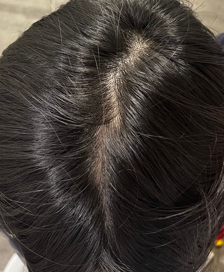 현재 정수리가 얇아보이거나 휑해보이지 않습니다.