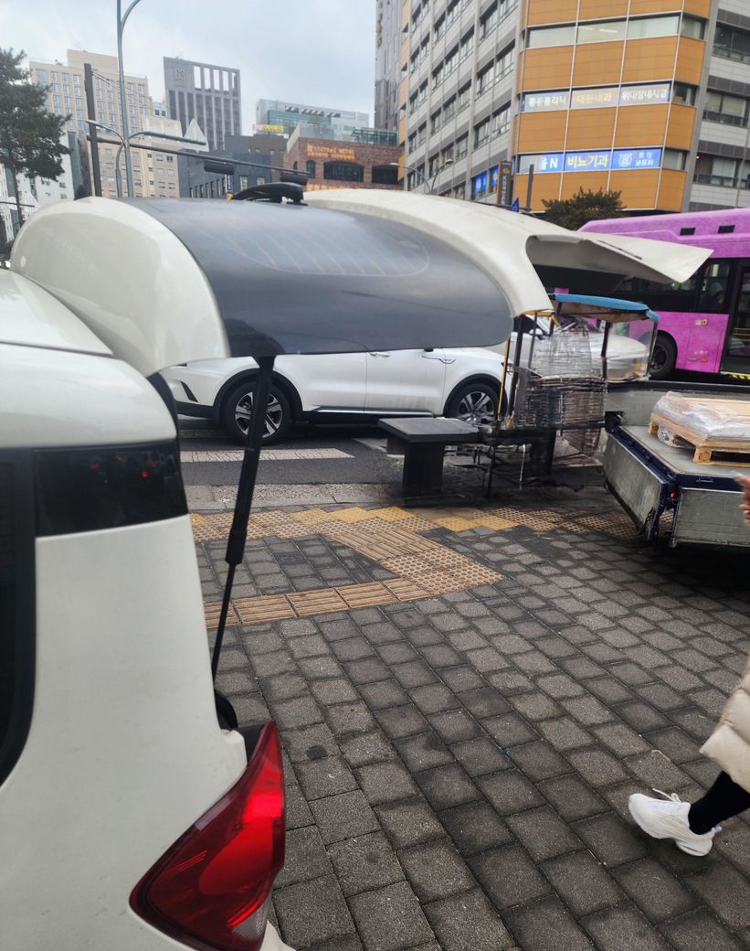 사고 당시 운전자가 차량 트렁크를 열어둔 채로 다른 용무를 보고 있었던 상황입니다.