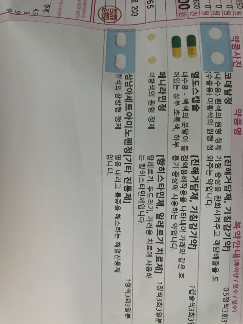 처방받은 약의 마지막줄에 있는 삼남아세트아미노펜정이 타이레놀과 같은 약이기때문에 추가하시면 안됩니다.