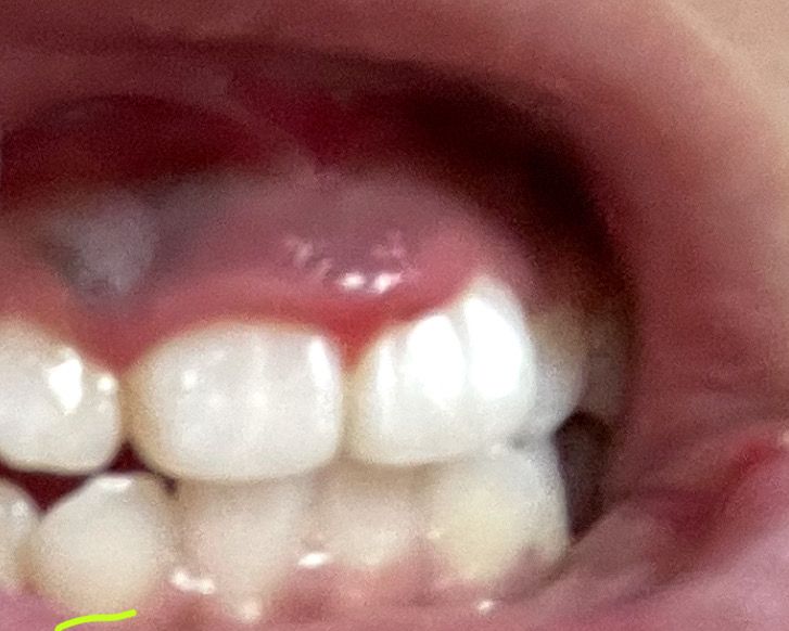 잇몸에도 혈관이 다 흐릅니다. 보통 저런 검푸른 변화는 혈관과 관련된 것일 수 있고, 염증생성으로 인한 혈류변화일 수도 있습니다. 치과가보시기 바랍니다. 구강내과나 치주과 가보시면 잇몸 전문적으로 볼 수 있습니다.
