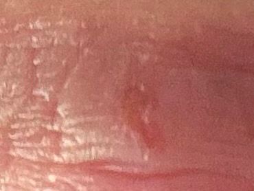 사진상 병변은 전형적인 수포 단계는 지나고, 미란(erosion) 또는 얕은 궤양 단계로 보입니다. 붉은 기저 위에 얕게 파인 형태이며, 진물이나 부종, 통증이 뚜렷하지 않은 점을 고려하면 염증 활성은 이미 감소한 상태로 판단됩니다.