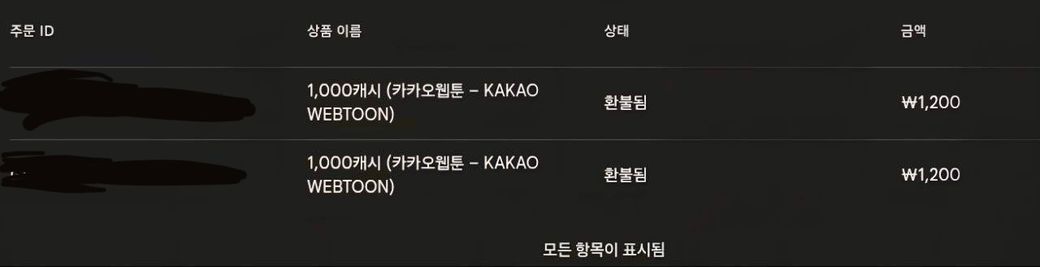 구글플레이에서 환불이 완료되면 카카오웹툰에 충전된 유료캐시는 원직적으로 모두 회수됩니다.