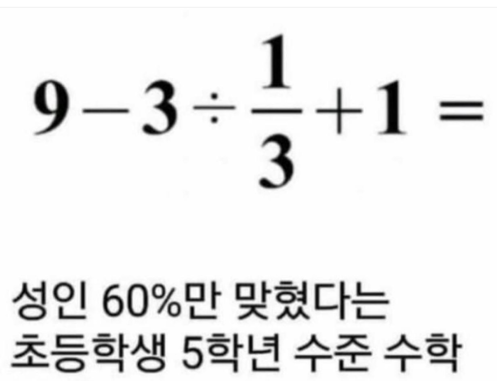 사칙연산 순서를 몰라서 틀리는 사람들이 많은 거 같습니다