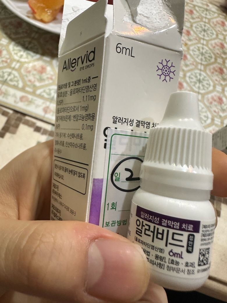 상기 안약은 항히스타민 성분으로 가려움 호전 등 알러지 질환에 사용되는 안약입니다.