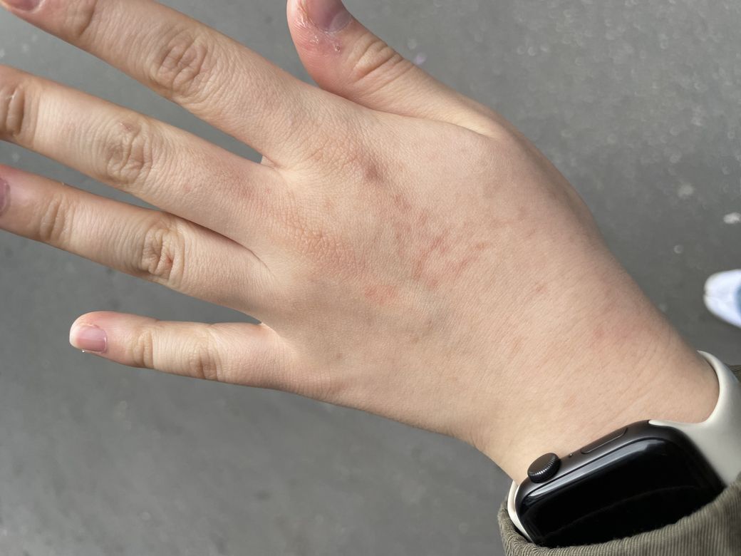 손에 물이 계속 닿는 직업 배우고있는데 가렵지않고 일주일전부터 처음엔 붉었는데 색이 변하고 계속 흉터처럼 남아있네요. 건조해서 수시로 핸드크림 발라주는데 극소량의 따가움밖에 없고 증상이 없습니다.