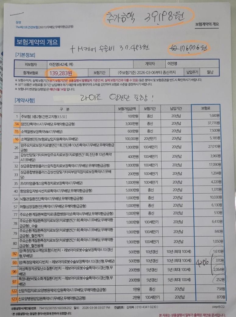 보험료도 절약 할 수 있구요. 또 제안받으신 상품이 삼성화재 상품이어서 보험료도 조금 더 높이 제안을 받으신 것 같구요.