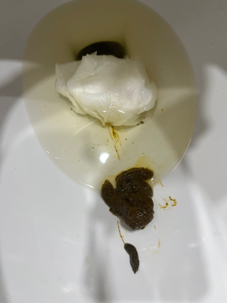 그래서 색이 어둡다가 아니고 완전히 검정색 변을 보게됩니다.