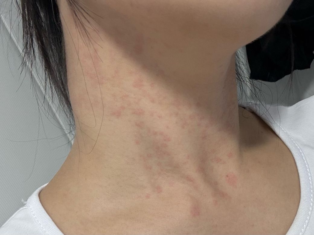 시간되시면 대학병원 꼭 가보세요. 특히나 류마티스 내과 가보십시오. 사진과 증상을 보면 몇 가지 중요한 특징이 있습니다. 밖에 나갔다 올 때마다 반복적으로 발생하고, 가렵지 않은 붉은 반점이 목과 얼굴, 손등에 나타나며, 피부과 치료 후 호전됐다가 2주 만에 재발했다는 점입니다.