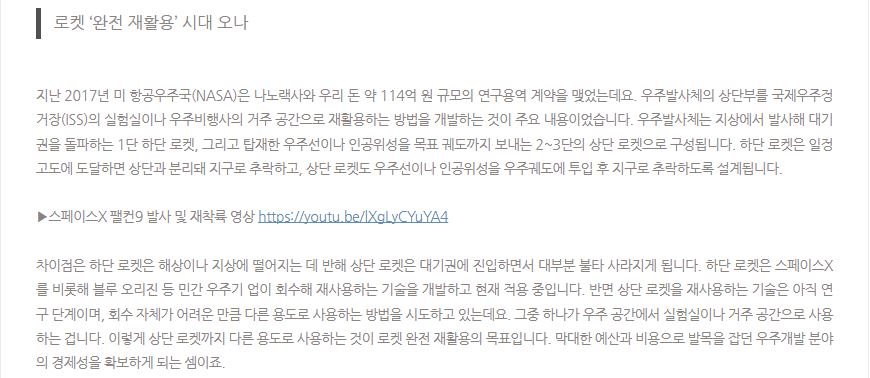 과학기술정보통신부는 며칠 전 차세대 우주발사체 개발사업 공청회를 개최했다. 2031년까지 2조원을 투입해 2단형 고성능 우주발사체와 재사용 우주발사체 기술을 확보하겠다는 계획을 발표한 것이다. 이 계획대로라면 우리는 발사체 선진국보다 5∼10년 늦은 2035∼2040년쯤에나 재사용 우주발사체를 갖게 될 전망이다. 곧 출범할 정부에서는 항공우주 분야의 정부 조직을 강화해 항공우주산업을 활성화하려고 한다. 이를 위해서는 산업체를 앞세우고 예산을 증액해서라도 2030년까지 국제시장에 진출할 수 있는 국산 재사용 우주발사체를 개발하는 도전이 필요하다. 개발 시기와 목표가 좋으면 관련 산업체도 더 적극적으로 참여할 것이고, 해외 공동개발도 기대할 수 있을 것이다. 누리호를 개발한 능력이라면 우리도 충분히 할 수 있다.
