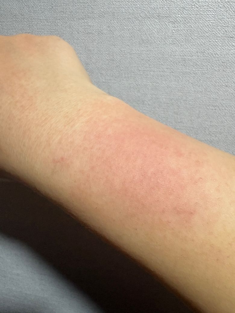 • 붉은기가 손등·팔로 퍼진다
