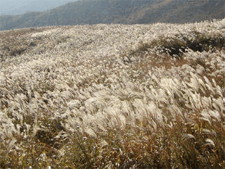 다음은 억새는 산이나 들녁에 자라고 꽃은 9월말부터 피어 10월말쯤 최고조에 이르고 꽃색깔은 흰색이며 키는 1MR20CM