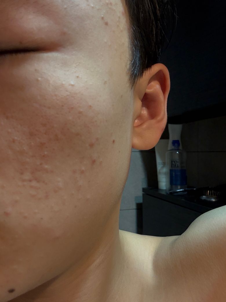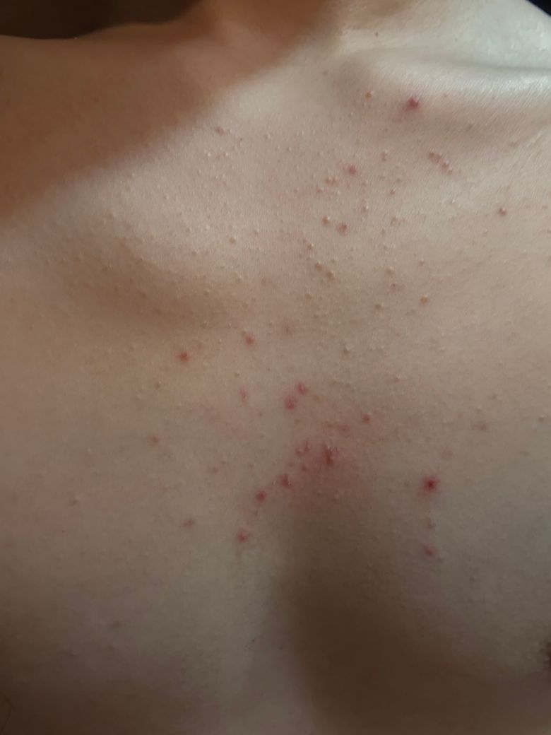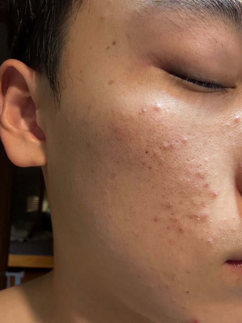 얼굴과 가슴에 전체적으로 심하게 트러블이 났습니다.