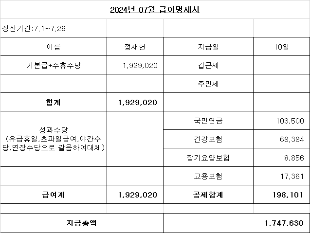 그런데 왜 7월에는 연차수당등이 포함안되어서 저렇게 금액차이가 큰지 궁금합니다