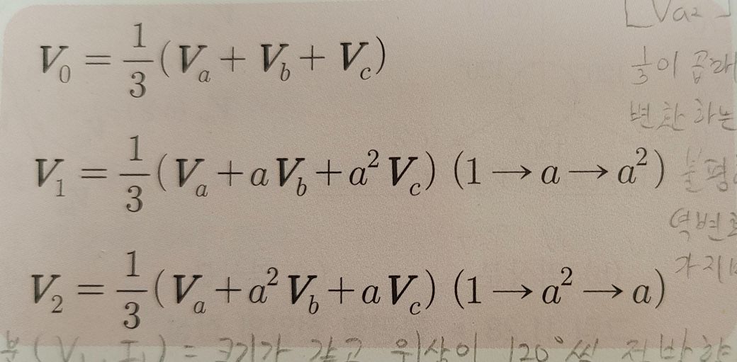 영상분 전압(V0), 정상분 전압(V1), 역상분 전압(V2) 식에 1/3이 붙은 이유가 무엇인가요? 자세한 설명 부탁드립니다.