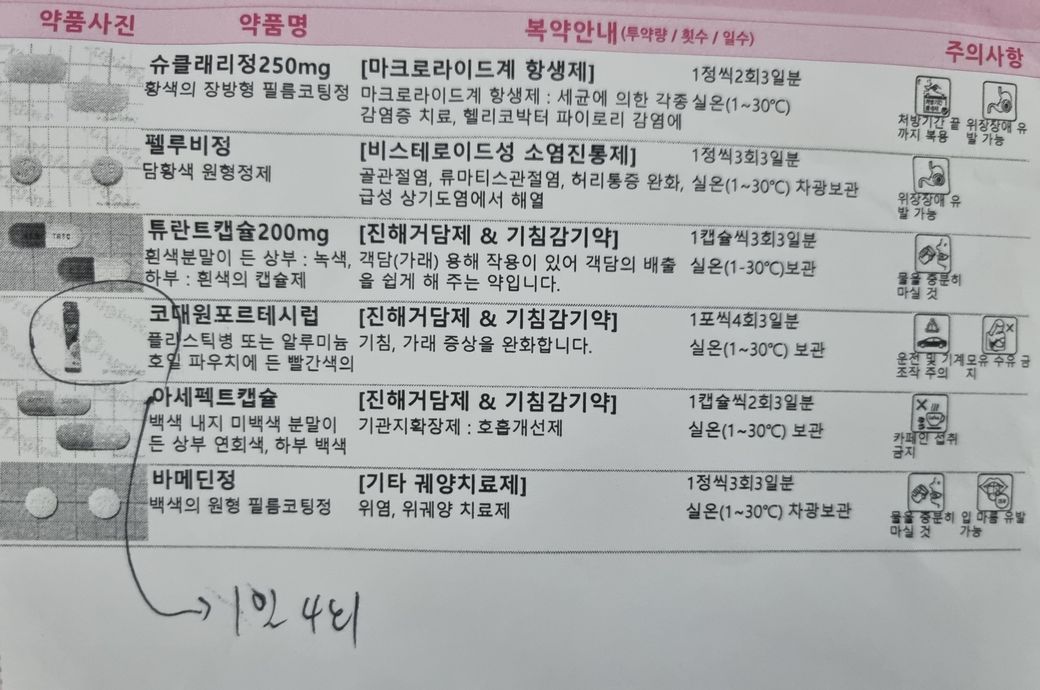 새로 처방받은 약을 잘 복용하세요.