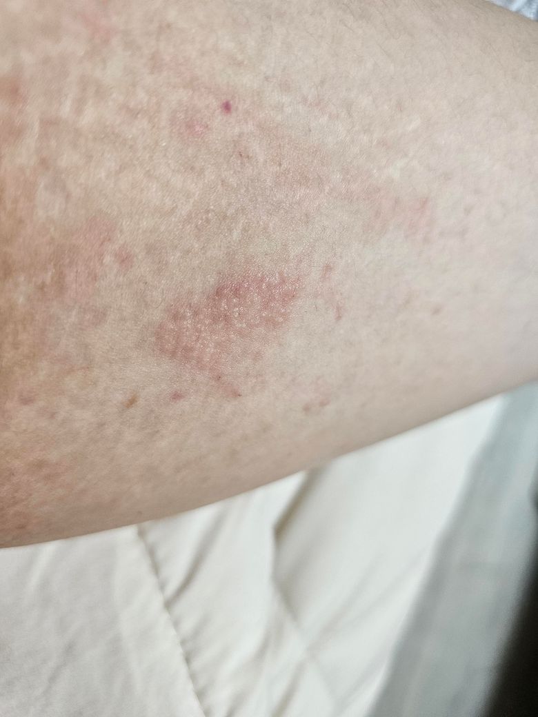 이런식으로 팔뚝 안쪽에 두드러기 혹은 발진? 같은게 났는데 간지럽기도하고 누르면 일반 피부보다는 아프고 수포라고 해야하나 진물도 있어요 이게 뭔가요?