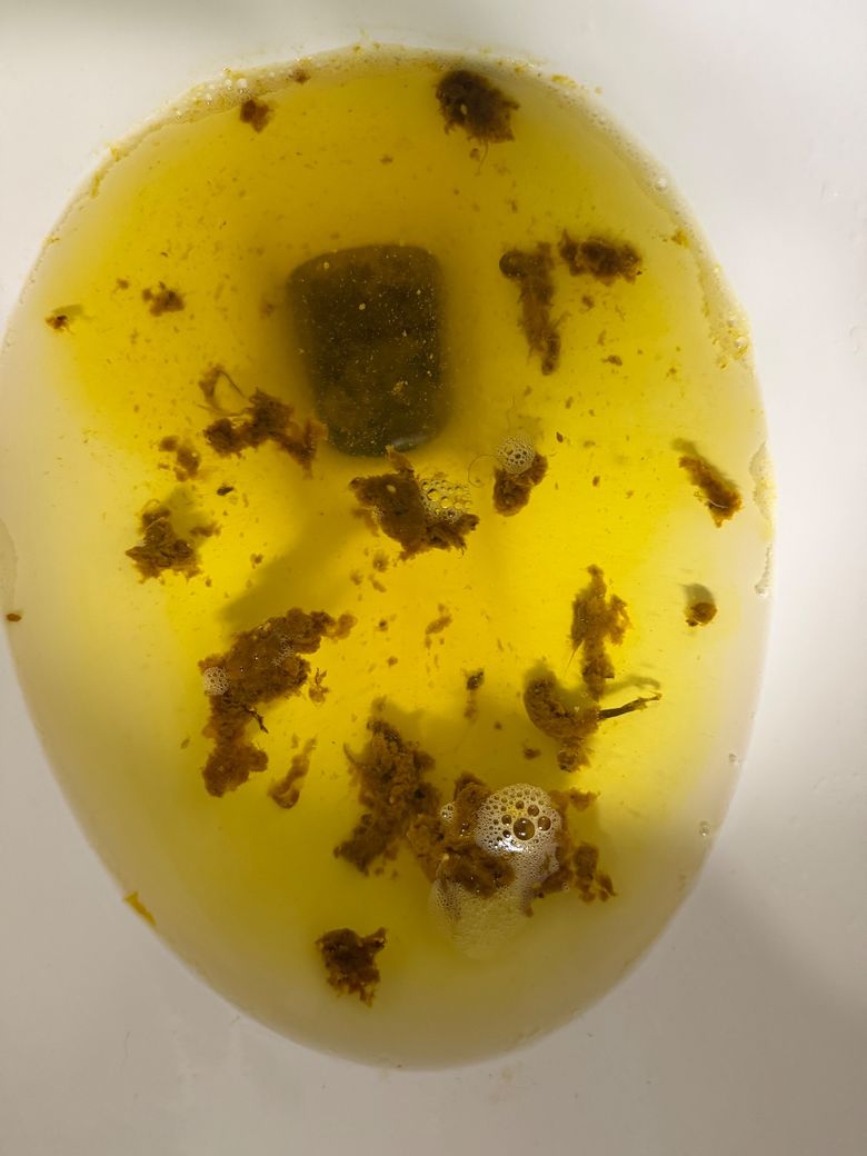 지금 사진은 3번째인데 처음볼때는 더욱 진한 녹색빛이 보입니다 매일 아침에는 정상적이었다가 복통이 생긴후 꼭 이렇게 나옵니다 병원을 가야하나요? 지속된건 10개월 넘었습니다