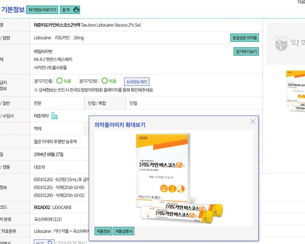태준 리도카스 비스카스 2% 약에 대해 질문있습니다!