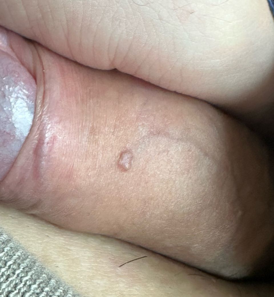 헤르페스나 곤지름 등의 성매개성 질환에서 관찰되는 수포성 병변이나 사마귀 형태의 병변이 아니므로 성매개성 피부 질환으로 보기는 어렵습니다. 작은 구진성 피부 병변이나 피부 연성 조직의 늘어남으로 판단되며 증상이 없고 크기나 모양의 변화가 없다면 별다른 치료 없이 경과 관찰이 가능합니다. 만약 제거를 원하신다면 레이져 등으로 제거할 수 있어 피부과나 비뇨의학과 진료를 보시는 것이 도움이 되겠습니다. 부족한 답변이지만 도움이 되었기를 바랍니다.
