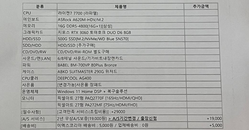 건축학과 본체 조립하러 왔는데 견적서 이대로 괜찮을까요? 비용은 180만원 정도 되는데 졸업할 때까지 무리없이 쓸 수 있을까요?