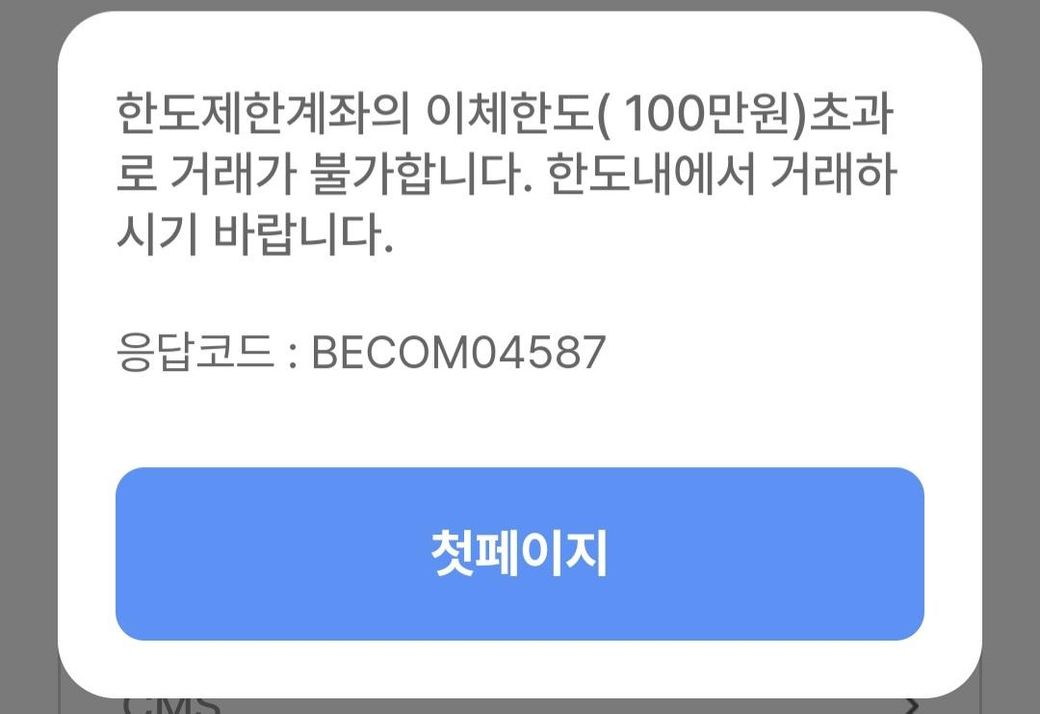 이에 이를 초과한 금액을 이체할 수가 없는 상황입니다.