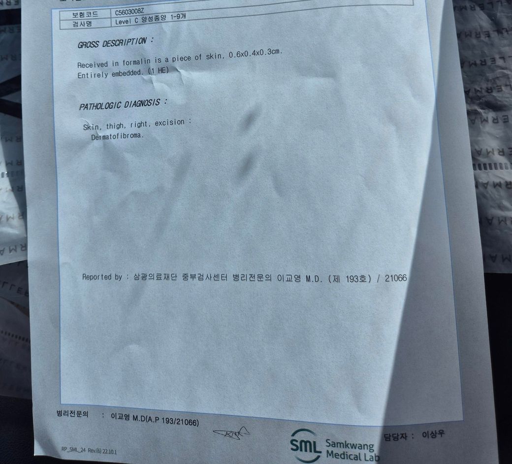 위의 조직검사지 상 피부섬유종으로 나오는데