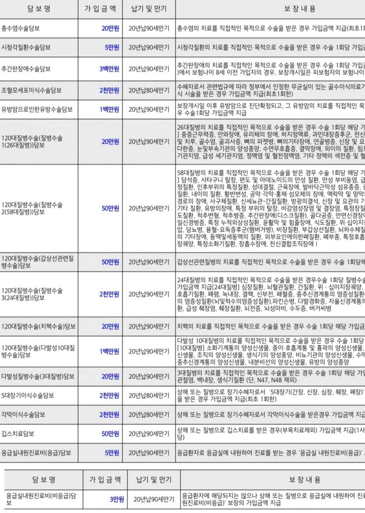 그리고 상해에 대한 것은 거의 없고 거의 수술에 대한 것인데 이 참에 기존 보험을